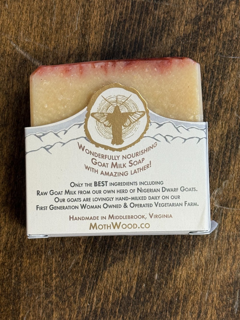 This Goat Milk Soap is made with Olive oil, Coconut Oil, Shea Butter and other 100% Natural ingredients! The scent is Virginia Cedar. Made by Moth Wood in Middlebrook Virginia! Cruelty Free