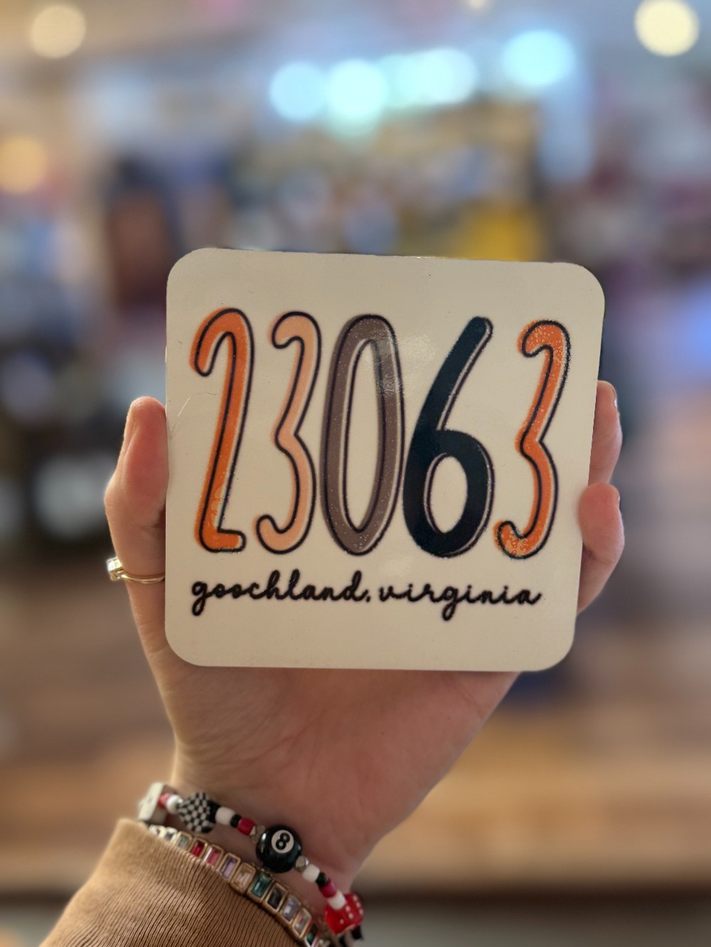 Represent Goochland anywhere with this custom made 23063 postal code coaster! Cork bottom